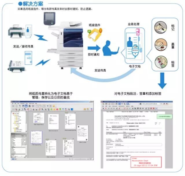 每天都要接收各种传真。然而当需要查询以前接收的传真时,可能谁都不记得存放到哪里了,只能费事地在归类文件中一点点查找,不仅费力,更是费时。如果原件遗失就更麻烦了。不如试试传真无纸化吧!将纸质文档转化为电子文档,不仅易于日常管理,更能加强安全问题,减少纸张浪费,节约空间,“打”破烦躁,杜绝原件丢失的现象。