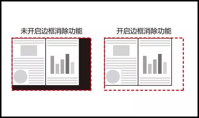 开启边框消除功能后, bizhub 306 系列将自动检查原始文件合理区域,并自动消除阴影区,使用户获得最佳的输出图像。