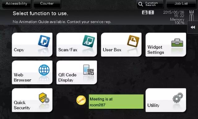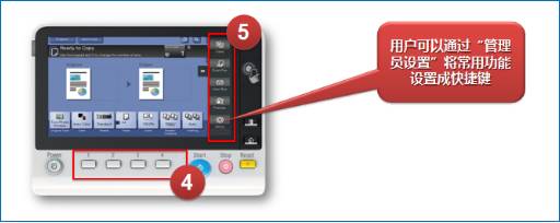用户可以将文本框、图标或GIF动画显示在操作面板上,用于显示复合机的操作注意事项、办公室通讯等信息。